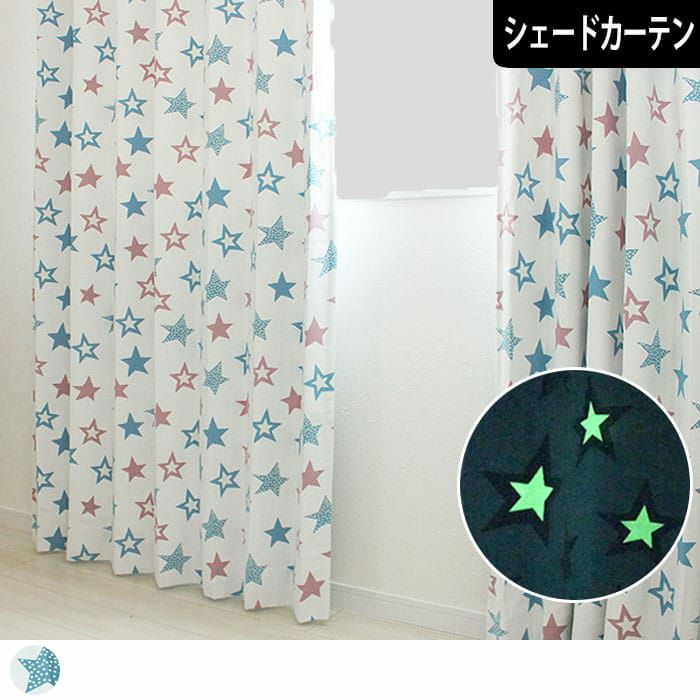 かわいい星柄がちらばる子供部屋におススメの遮光2級カーテン 外からの視線を遮り、プライバシーを守ります。 子供っぽすぎない色合いなので、お子様が成長されてもお使いいただけます。 蓄光プリントなので、夜暗くしてもお楽しみいただけます。