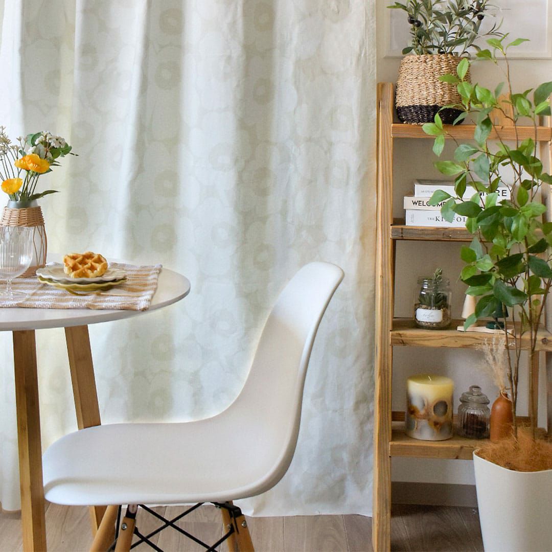 カーテンの仕上がり幅に対して約1.1~1.3倍の生地を使用(当店では1.2倍を推奨)し、ヒダ山がないカーテンです。柄がしっかりと見えるので大柄のデザイン生地やナチュラルな生地におすすめです。