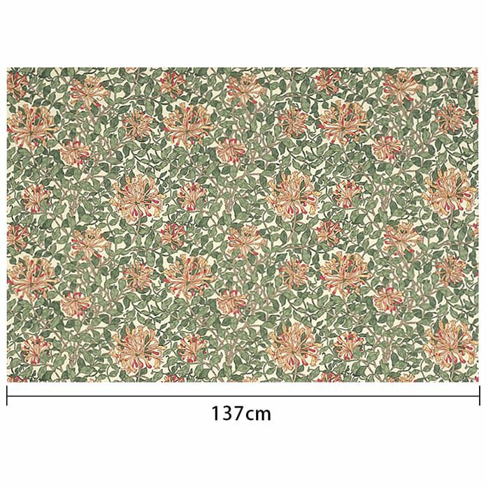 モリスの娘のデザイン。 斜め方向に流れがあり、隣接する葉が絡み合う複雑なデザインは、 12の木版からなるオリジナルのハンドプリント壁紙のスタイルを反映している。