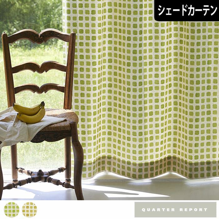 手書きスクェア型ドット柄ナチュラル綿麻シェードカーテン