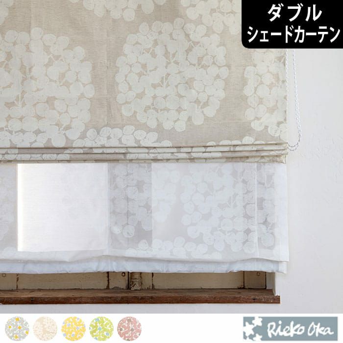 大きな手書きのアジサイ柄ダブルシェードカーテン
