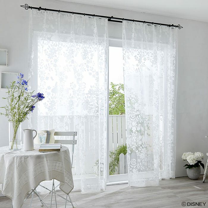 アリスとチェシャ猫と時計ウサギが隠れたシアーレース 【レースカーテン】スウィートフラワーボイル|ALICE(ふしぎの国のアリス)|ディズニー