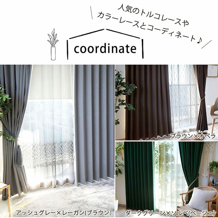 ご購入いただいたカーテンと同じカラーを再注文される場合でも、染色ロットにより多少の色ブレが出ている可能性があります。必ず無料サンプルにて生地の質感やカラーをご確認ください。