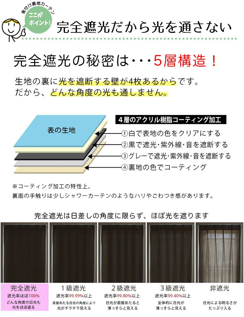 完全遮光の秘密は・・・5層構造!
