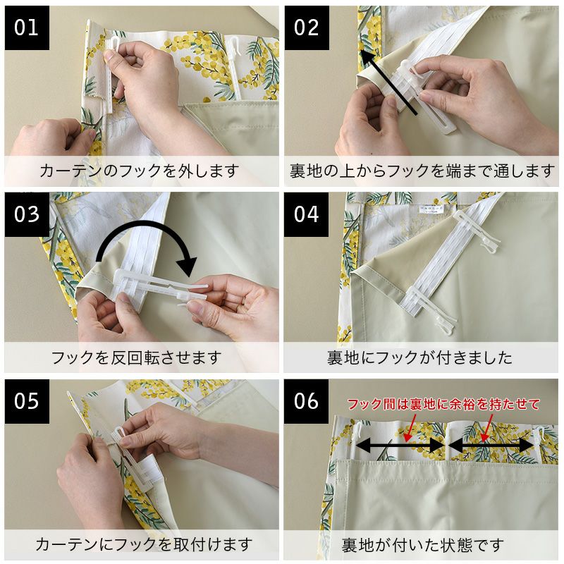 ・お手持ちのカーテンがフックを取り外し出来ないタイプの場合は取り付けることができません。