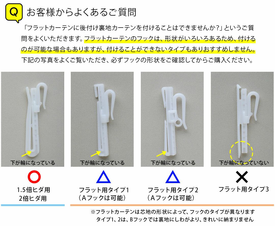 後付け裏地レースカーテン|最強遮熱 フラットフックの注意点
