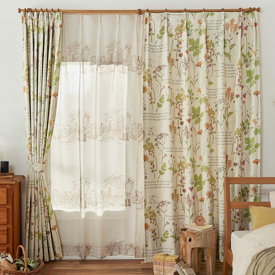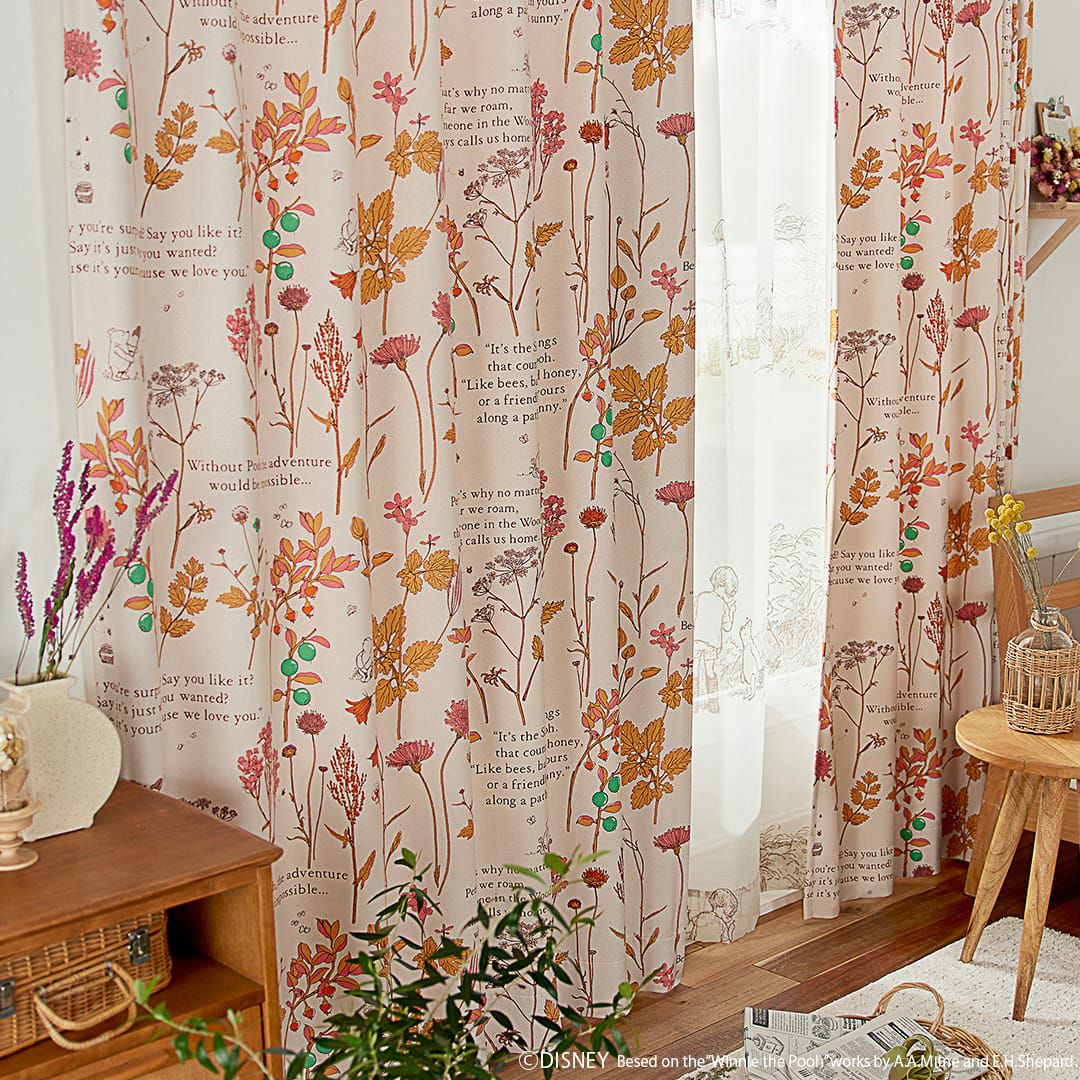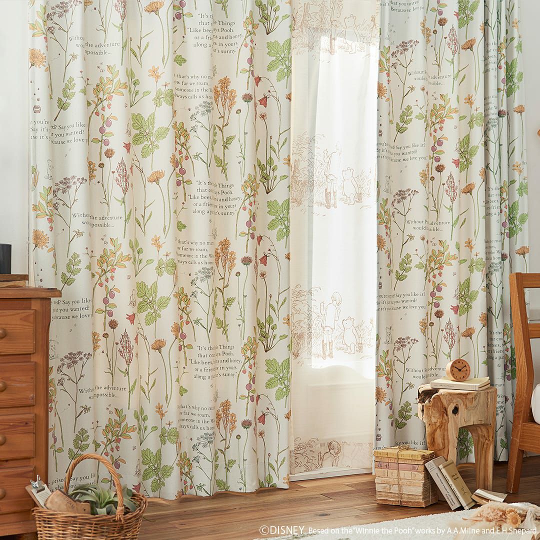 プーさんと野生の花々が穏やかな雰囲気のドレープカーテン 【遮光カーテン】フロムフレンズ|POOH(くまのプーさん)|ディズニー