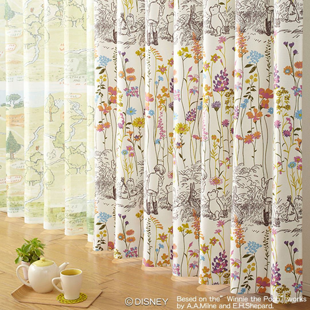 お花がいっぱいのガーデンでくまのプーさんと仲間たちが探検中 【遮光カーテン】ガーデンプレイス|POOH(くまのプーさん)|ディズニー