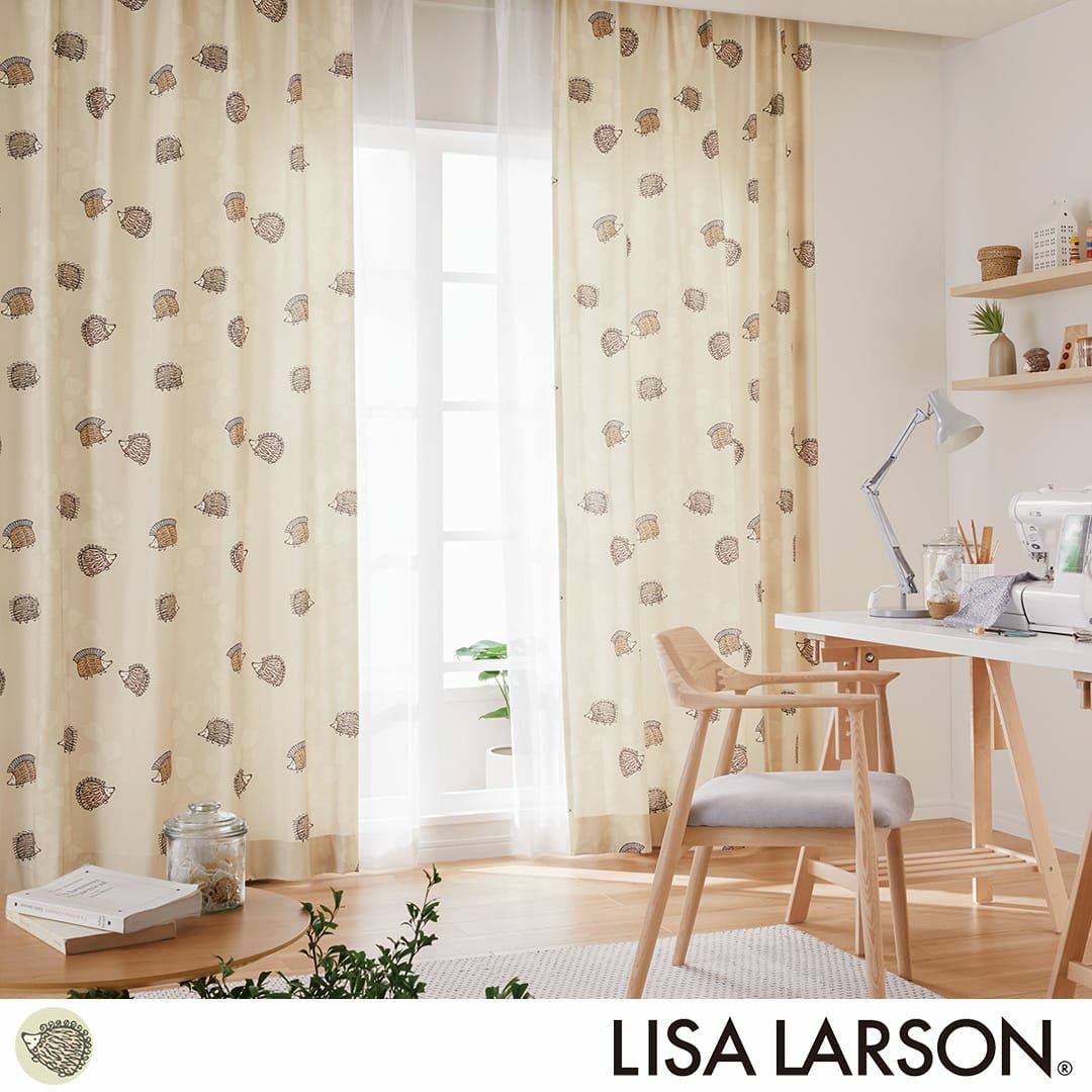 北欧カーテン「リサ・ラーソン」シリーズ 風合い豊かな綿100%生地に プリントされた大にぎわいのハリネズミ3兄弟♪ お部屋がパッと明るく楽しい雰囲気に。