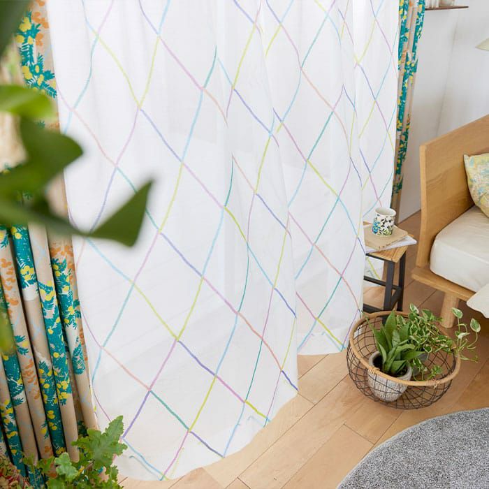 手描きのアーガイル模様がユラユラ。華やかさとぬくもりを感じる北欧風ボイルレースカーテン。 【北欧レースカーテン】アーガイルボイル
