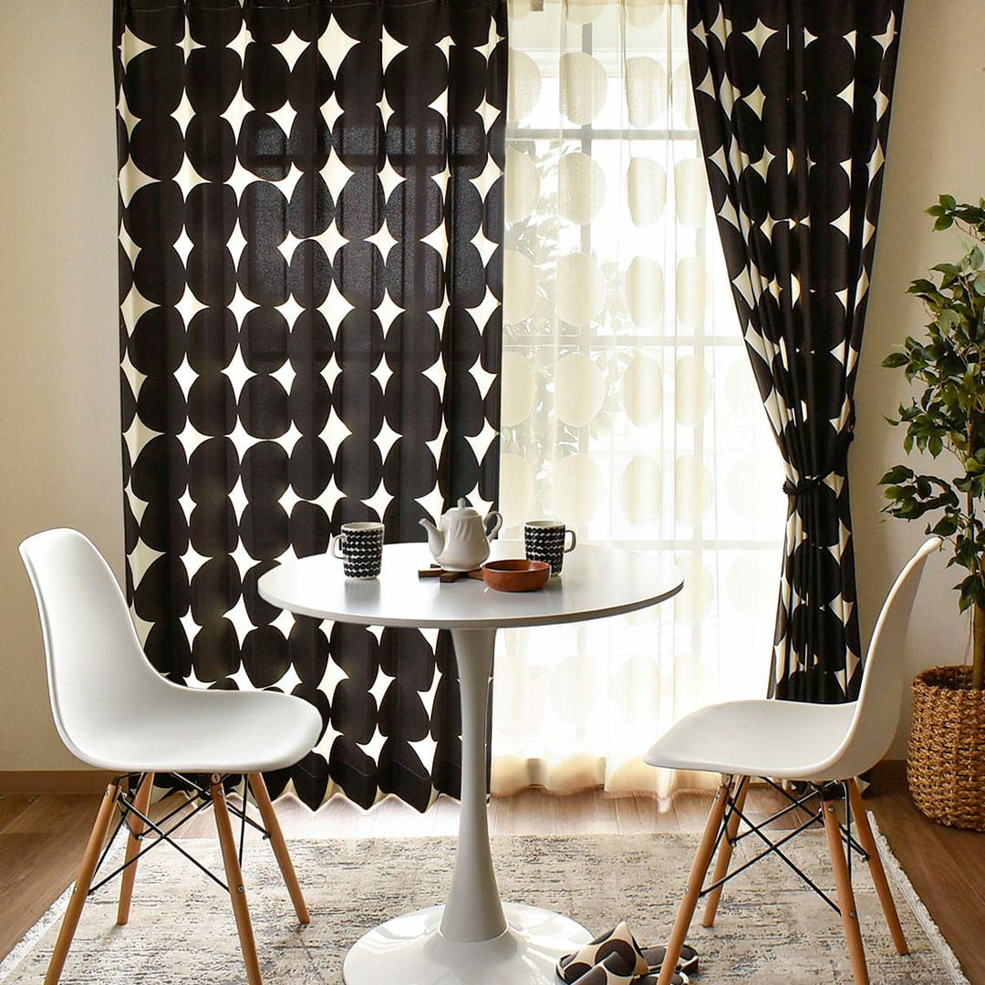 当店オリジナルデザイン!モノトーンなモダンなお部屋に大柄の北欧デザインを合わせることで北欧モダン風のお部屋になります。モノトーン×かわいい丸柄のデザインで、可愛さをプラスした北欧モダンカーテンです。
