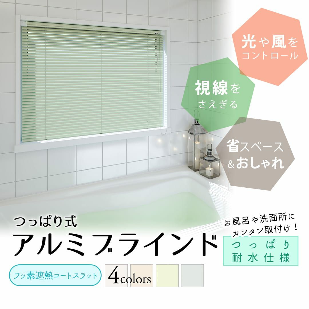 オーダーサイズの激安アルミブラインド!お風呂や洗面所におすすめ!サビに強くつっぱり式で取り付けカンタンなつっぱり耐水仕様 【アルミブラインド】つっぱり耐水仕様 フッ素遮熱コートスラット