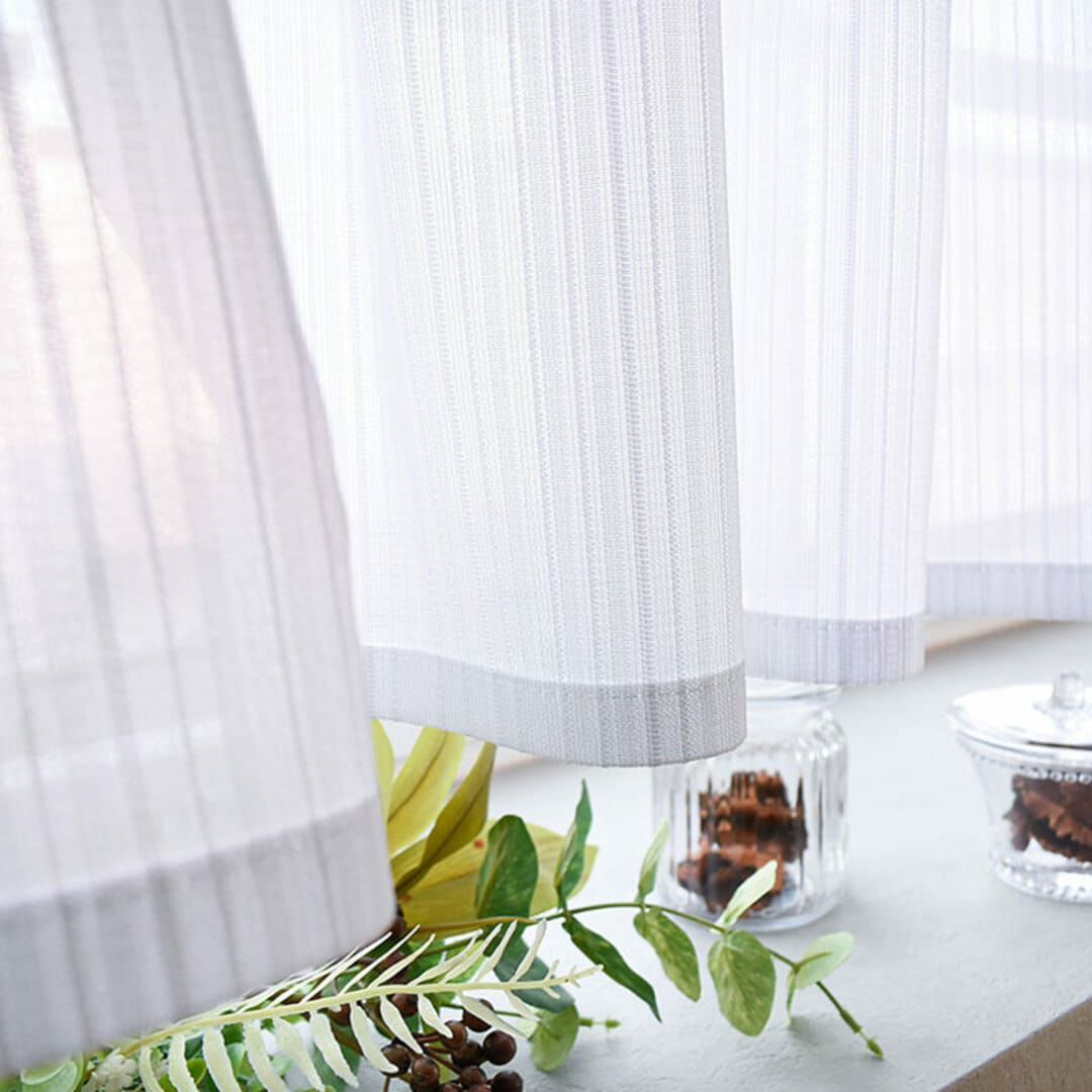機能重視のシンプルなカフェカーテンです。 窓枠ピッタリサイズだとスッキリとした印象に! 外からの視線が気になる小窓や腰窓におすすめです。