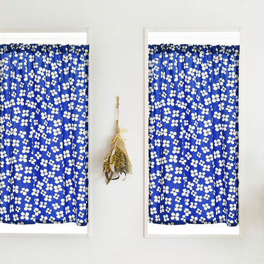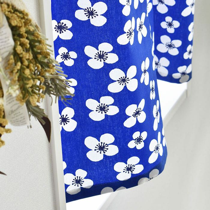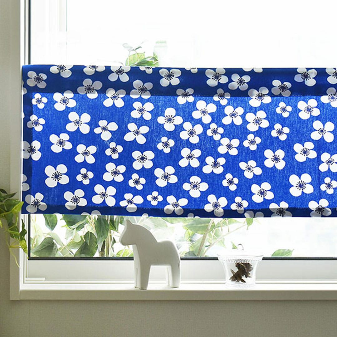 ▲横幅90cm×高さ30cm 鮮やかなブルーに白い小花が映えて北欧らしいデザインです。明るくかわいい小窓になります。