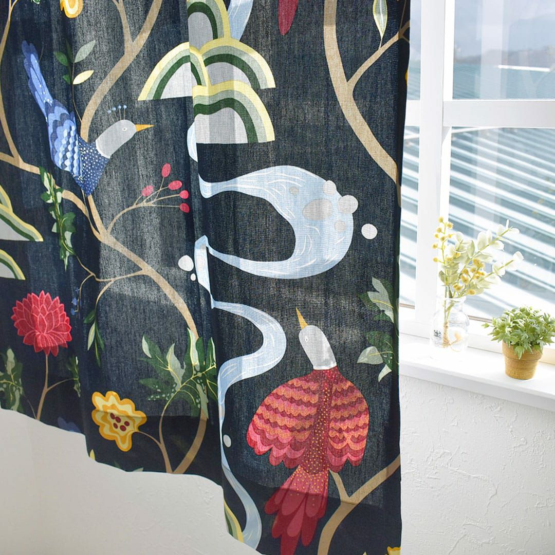 大きな鳥がすむ森のプリント柄カフェカーテン