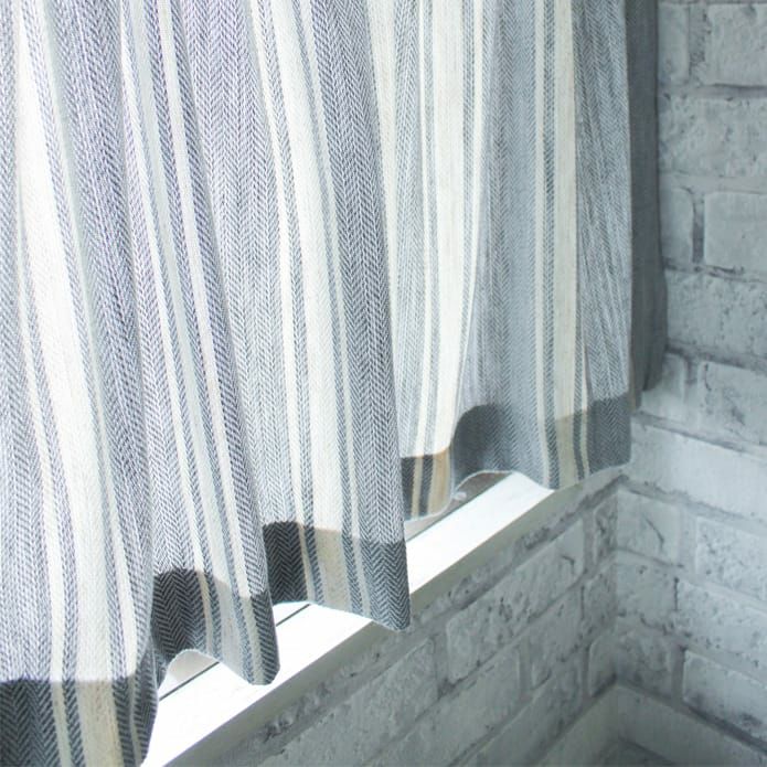 インダストリアルな空間に落着きのあるツイードライクな、 ヘリンボーンストライプでのコーディネートで北欧モダンに。 差し込む光の影がシャビーな柄になり、深みのあるカーテンに。