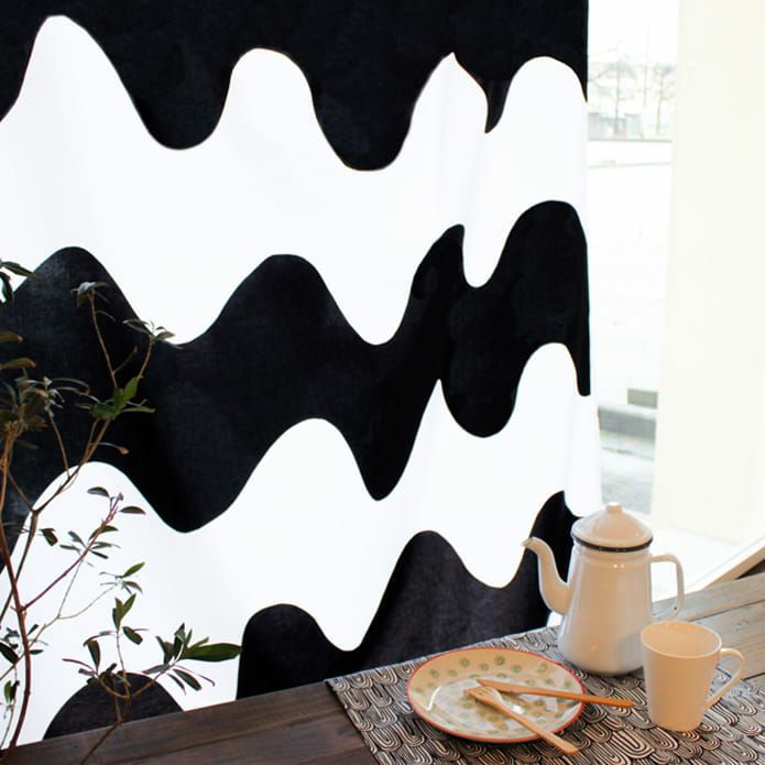 海の上をカモメが優雅に漂うように大きく波打ったデザインの「ロッキ」。 Maija Isola(マイヤ・イソラ)によって1961年にデザインされました。 シンプルなのに迫力があるデザインにも関わらず、 どこかクラシカルでモダンなお部屋に変身します。 フラットはもちろん、ヒダをつけてより躍動感をつけるのもおすすめです。