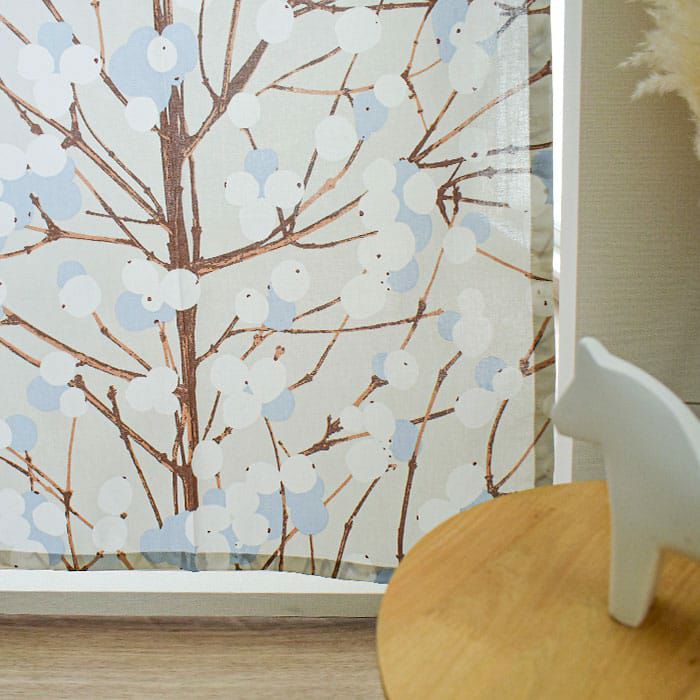 ▲横幅71cm×高さ200cm(フラットタイプ) 冬の北欧の並木道が浮かんでくるようなデザインはお部屋をぱっと華やかにしてくれます。 丈を長くすることでのれんのようなカフェカーテンにもでき、間仕切りの役割をしてくれます。
