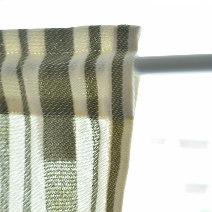 上と下にポールを通すおしゃれなスタイルです。裾の広がりがなく、細かいギャザーを表現することができます。フラットタイプとステッチタイプが選べます。(画像はステッチタイプ)