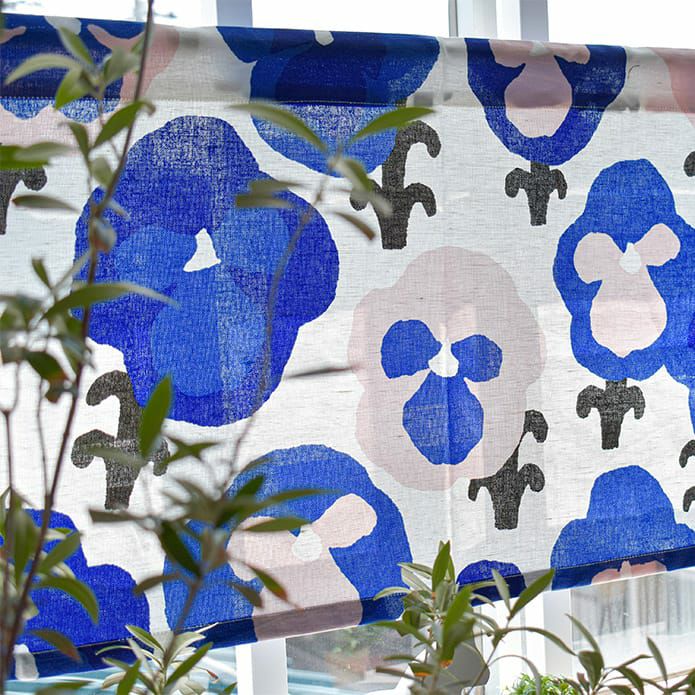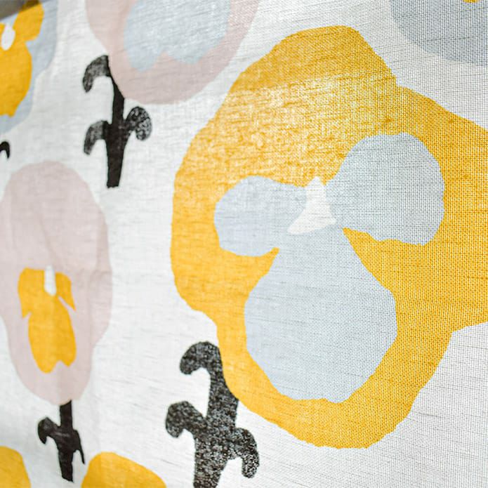 ハンネレ・アイヤラが手掛けた 色鮮やかなパンジーの花々を大胆に表現した作品です。 一輪ずつ異なる顔を持つパンジーの花の魅力を、 テキスタイルパターンとして美しく描きました。