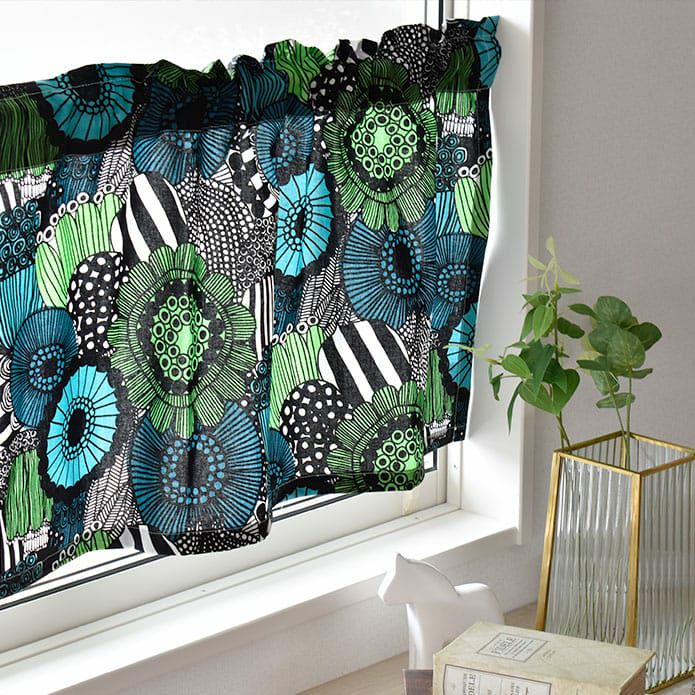 線画で描かれた花や野菜のモチーフが美しいデザイン。 めまぐるしい都会から、市民菜園への旅を描いたマイヤ・ロウエカリの2009年の作品です。 柄のスケールはおおよそ10~18cmほどで、小さなアイテムの制作や少量のご使用にも適しています。 小窓や収納棚の目隠し、間仕切りにお使いいただいてもおしゃれです! インパクトのあるカラーがお部屋に映えます。