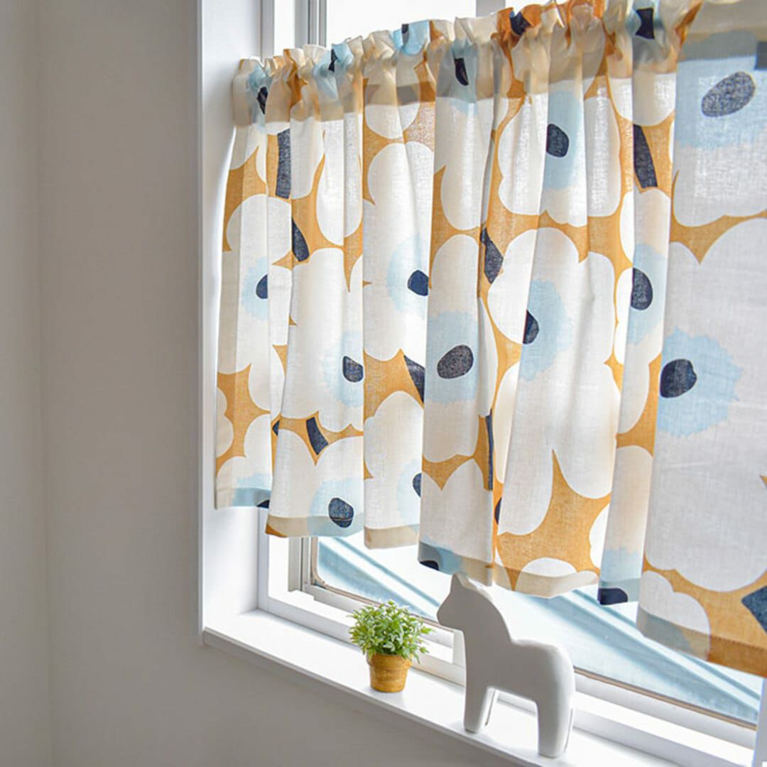 突っ張り棒で小窓をおしゃれに マリメッコの「ピエニウニッコ」で作る 1cm単位のオーダーカフェカーテン