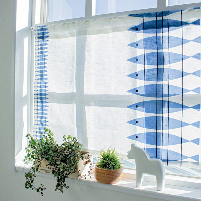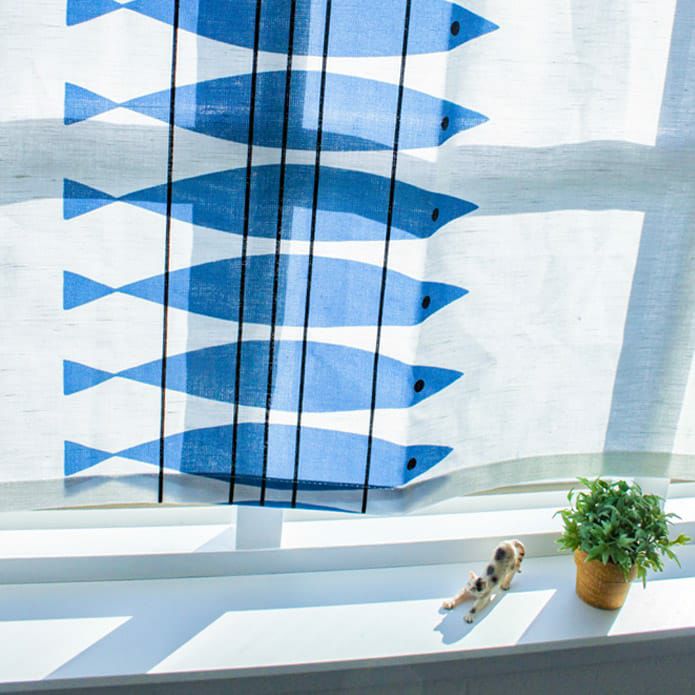 魚が泳いでいるような爽やかでかわいいデザインです。 ニシンの柄を全て出したい場合は横幅146cmでご注文ください。
