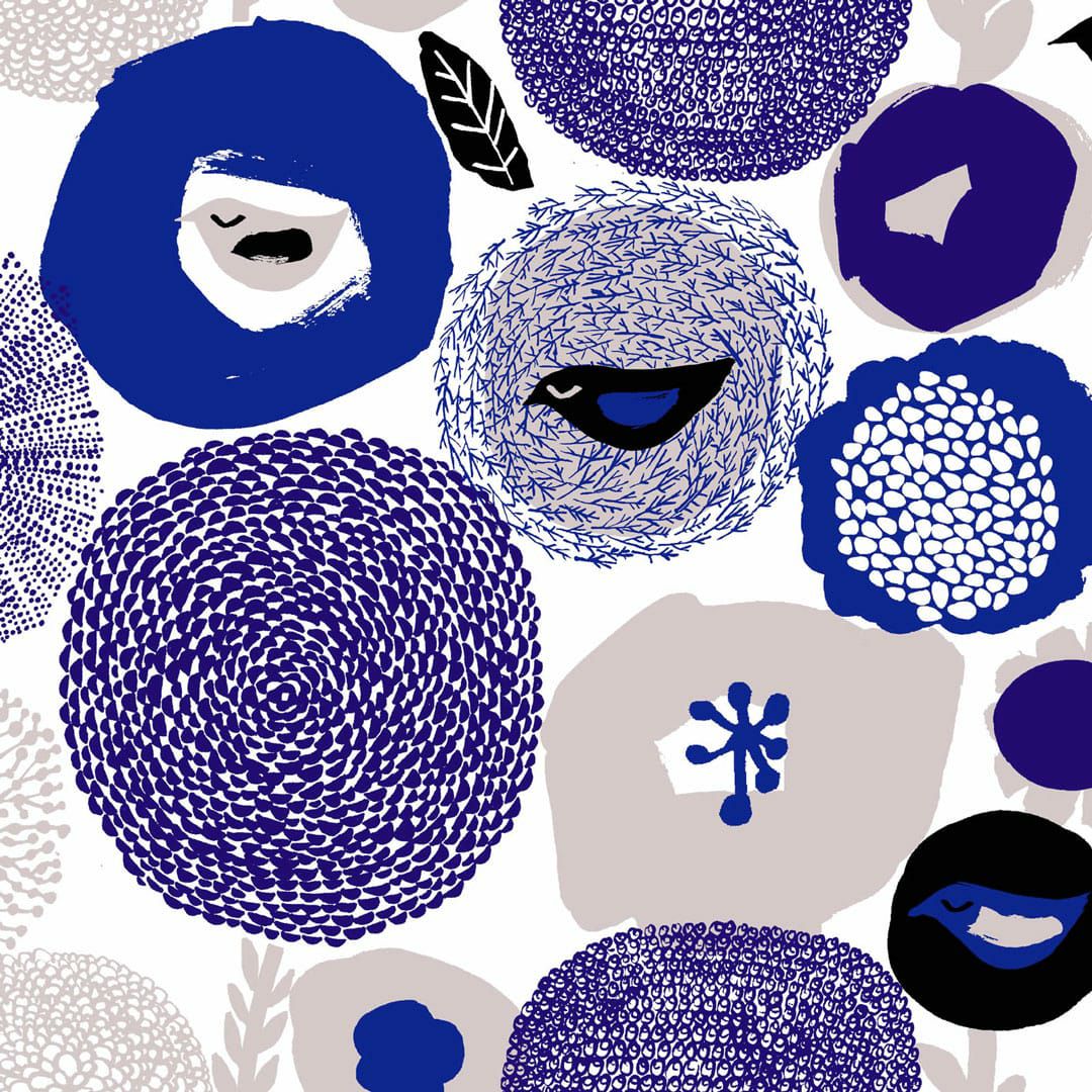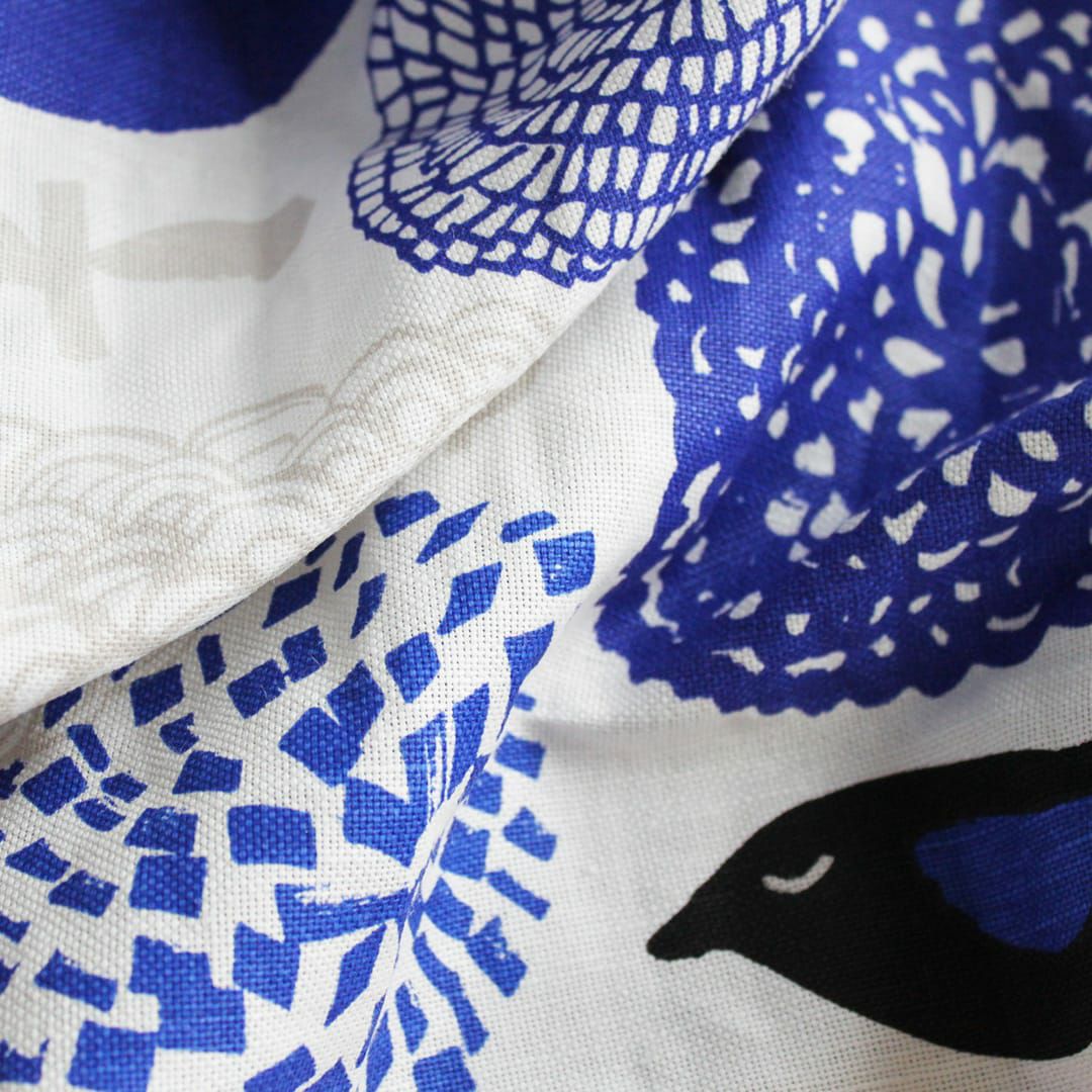 マッティ・ピックヤムサがデザインした 花々に囲まれながら休養する鳥達のモチーフのカウニステの人気デザインです。 手書き感のあり、のんびりとした休日の雰囲気が優しく描かれています。 綿と麻混合でしっかりとした生地です。