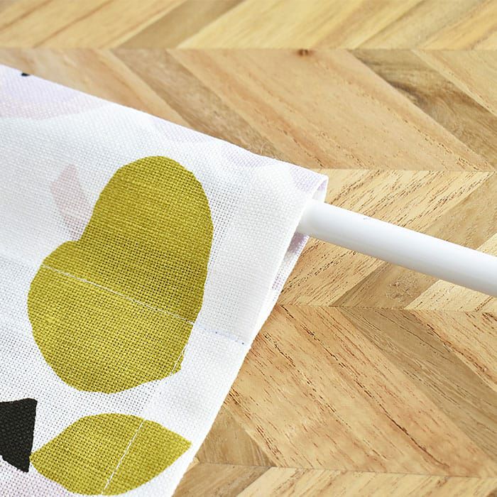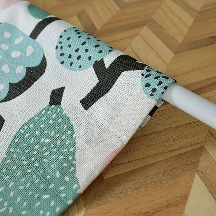 シャリ感のあるハリの強い生地なのであまり生地を寄せずにフラットめにお使いいただくのがおすすめです。 突っ張り棒で通すだけなので、取付簡単です。