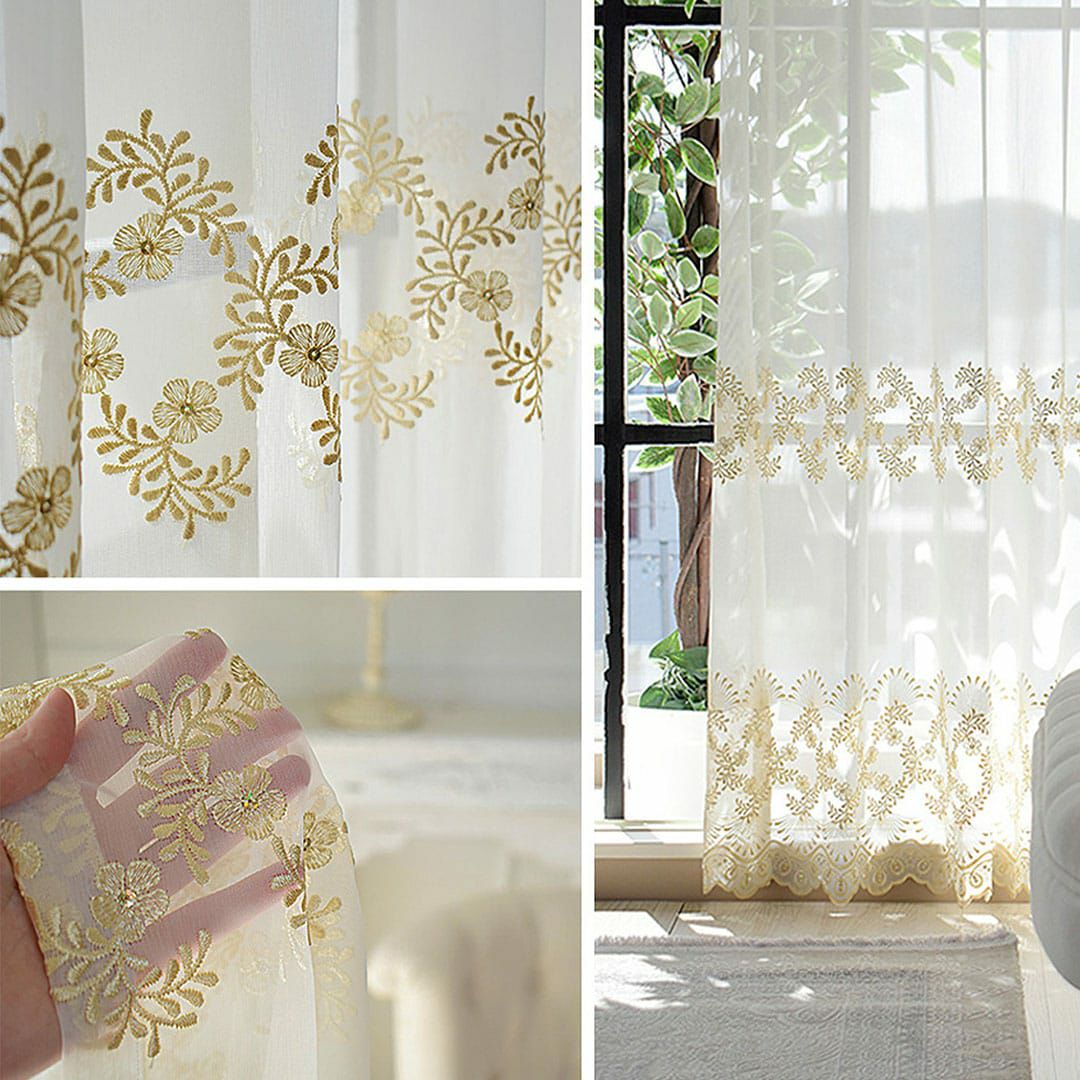 お花の刺繍の中心にスパンコールがついていてキラリと光り輝きます。 上質なボイル生地がほどよい透け感で高級感のあるお部屋にしてくれます。