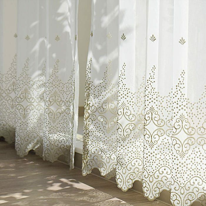 立体的な刺繍で1枚でも存在感のあるレースカーテン。 透明感のあるボイル地に繊細な刺繍を施した高級感のある生地です。