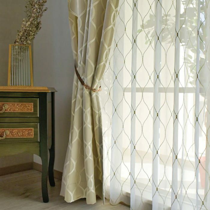 美しい刺繍がお部屋の雰囲気を格上げしてくれます。 刺繍はシャンパンゴールドの優しい色味です。 総柄なのにさりげない存在感で上品な空間に。 きめ細やかなさらっとした質感の生地です。
