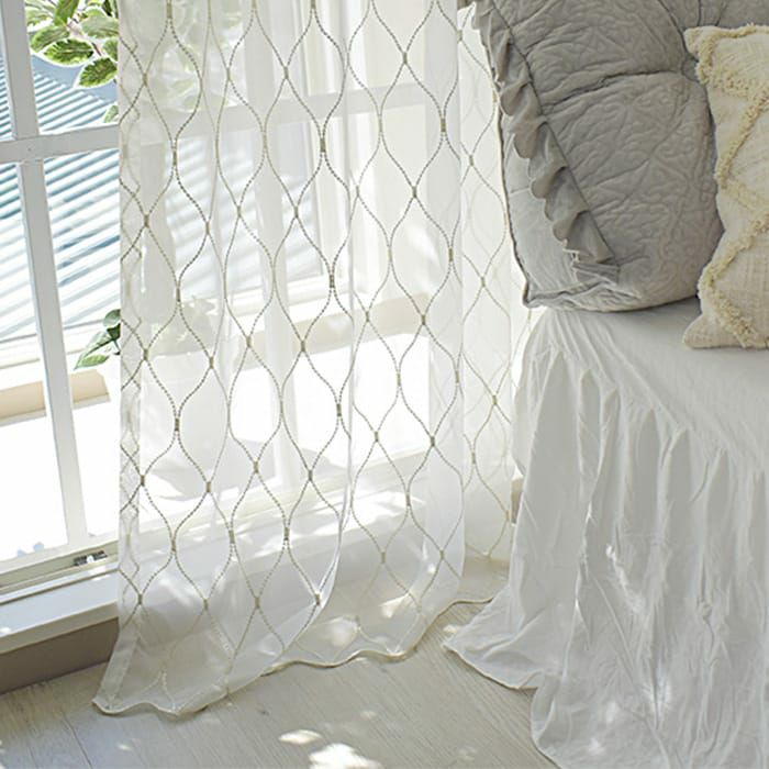 パールホワイトの華やかなトルコ刺繍のレースカフェカーテン