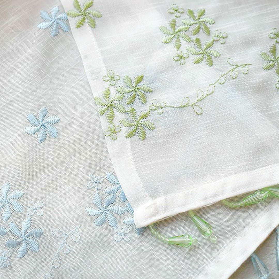キラキラのビーズトリムが付いた刺繍レースの既製カフェカーテン 【既製カフェカーテン】チャーム