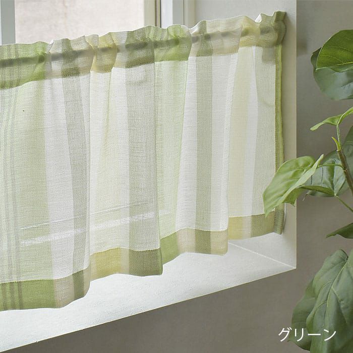 ※50cm幅の窓に対し100cm幅(2倍程度のボリューム)のカフェカーテンを使用しています。