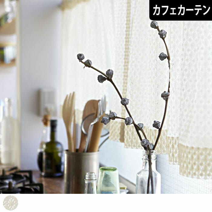 ナチュラルなアイボリー色で凸凹感のある編物レースで作ったカーテン ポリエステル100%だけど、ナチュラル感のある表情です。 窓からの風を受けてふわふわと揺れる優しい表情のレースはいかがですか。