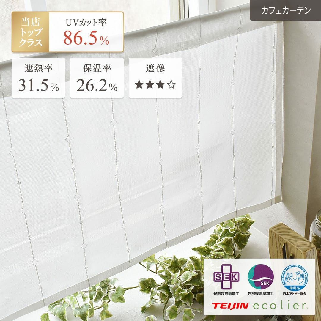 SEKマーク取得!光触媒消臭・抗菌加工 レースカフェカーテン