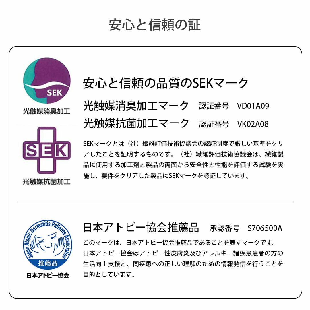 光触媒の働きは光を浴びるたびに続き洗濯してもその効果は変わりません。化学反応ではない自然の力でセルフクリーニングします。ご自宅の洗濯機で洗うことができるのでお手入れ簡単です!