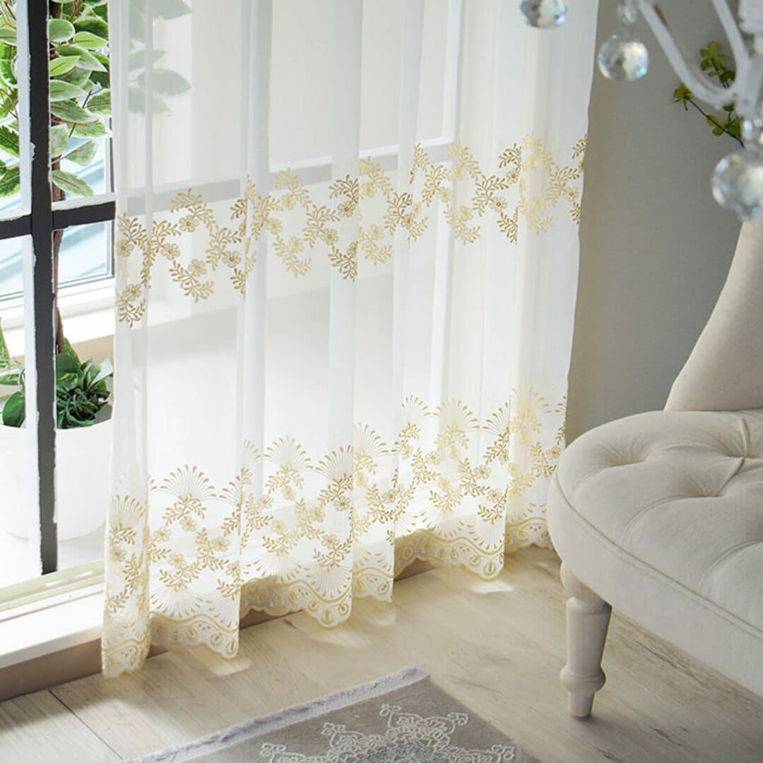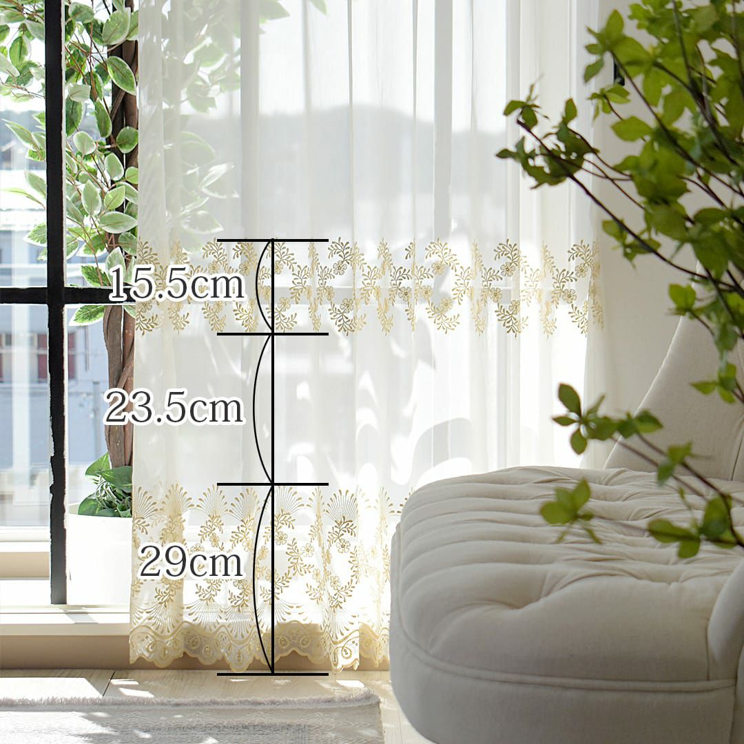 お花の刺繍の中心にスパンコールがついていてキラリと光り輝きます。 上質なボイル生地がほどよい透け感で高級感のあるお部屋にしてくれます。