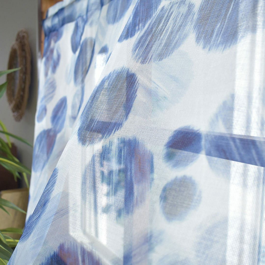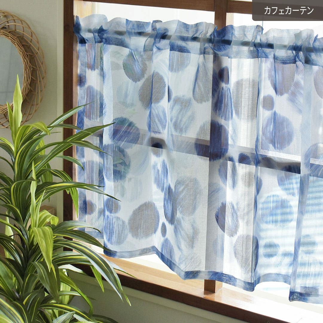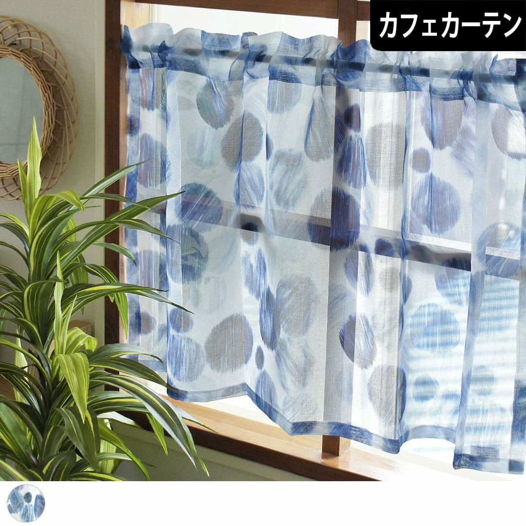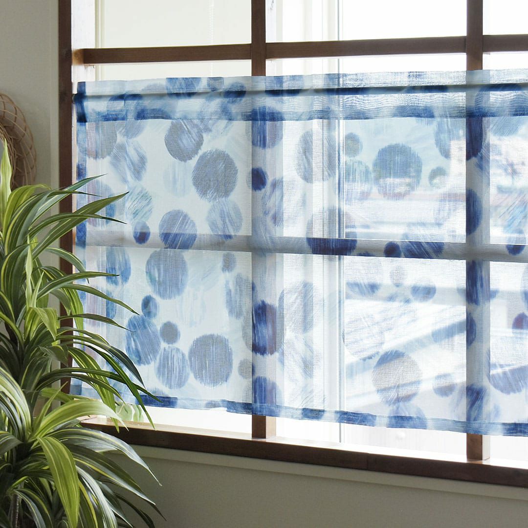 海中の泡のようなインディゴブルーのドット柄 西海岸スタイルのレースカフェカーテン