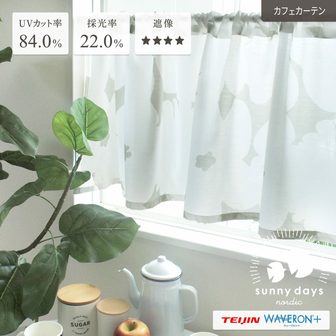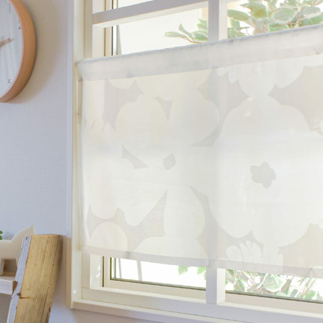 白い大きな花柄シルエットカフェカーテン