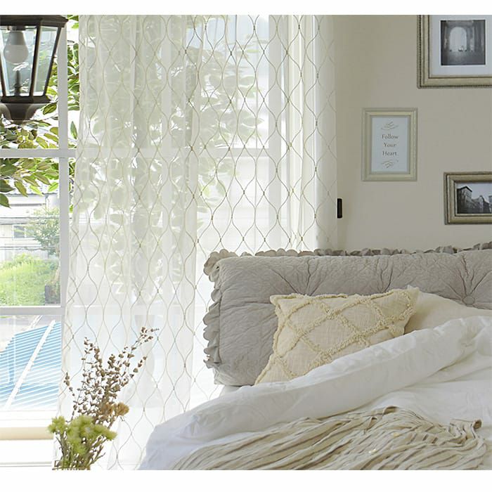 美しい刺繍がお部屋の雰囲気を格上げしてくれます。 刺繍はシャンパンゴールドの優しい色味です。 総柄なのにさりげない存在感で上品な空間に。 きめ細やかなさらっとした質感の生地です。