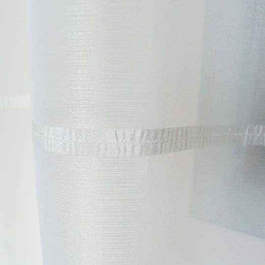 シンプルなのにエレガント。 その秘密は生地に織り込まれた光沢糸。 上品で柔らかいツヤが美しいボイルレースです。 サテンのようなリボンボーダーも華やかさをプラス。