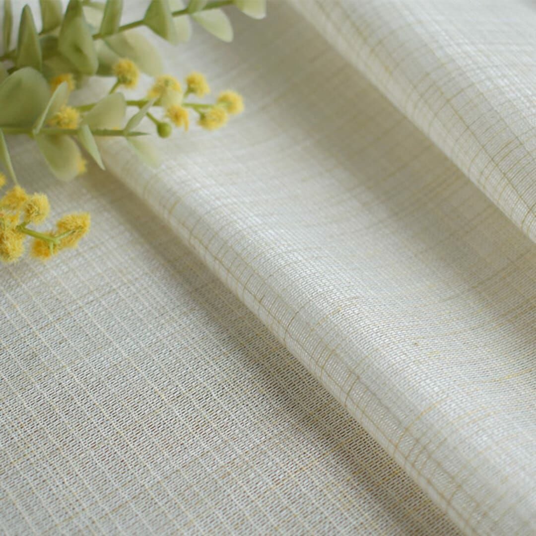ナチュラルな雰囲気を残しつつ「ミラー加工」を施した、高性能レースカフェカーテン。 麻風のベージュの糸とホワイトの糸が、チェック状に編み合わさっています。 ざっくりとした生地感がとっても素敵です。