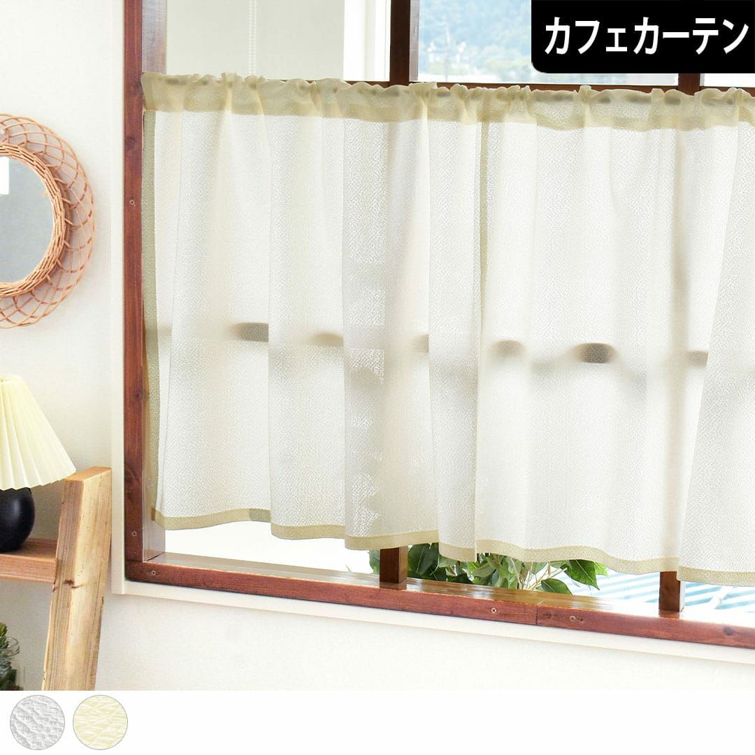 ▲(上)ホワイト (下)クリーム ミラーレース生地に、まゆを思わせる網目模様が縫製されたおしゃれなレースカフェカーテン。 生地はやや厚く丈夫で、ポリエステル100%なので、自宅の洗濯機で洗えます。