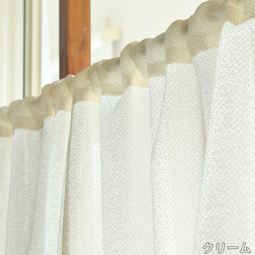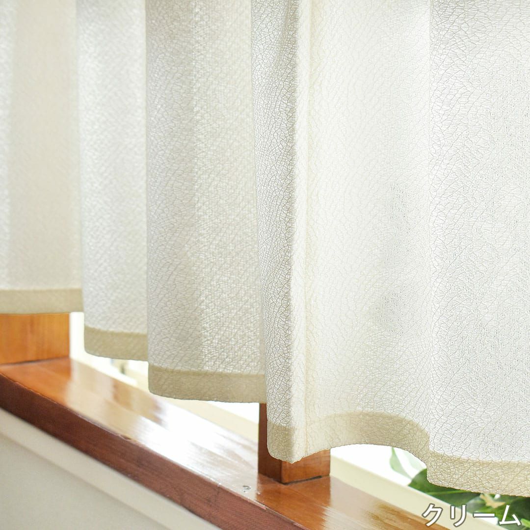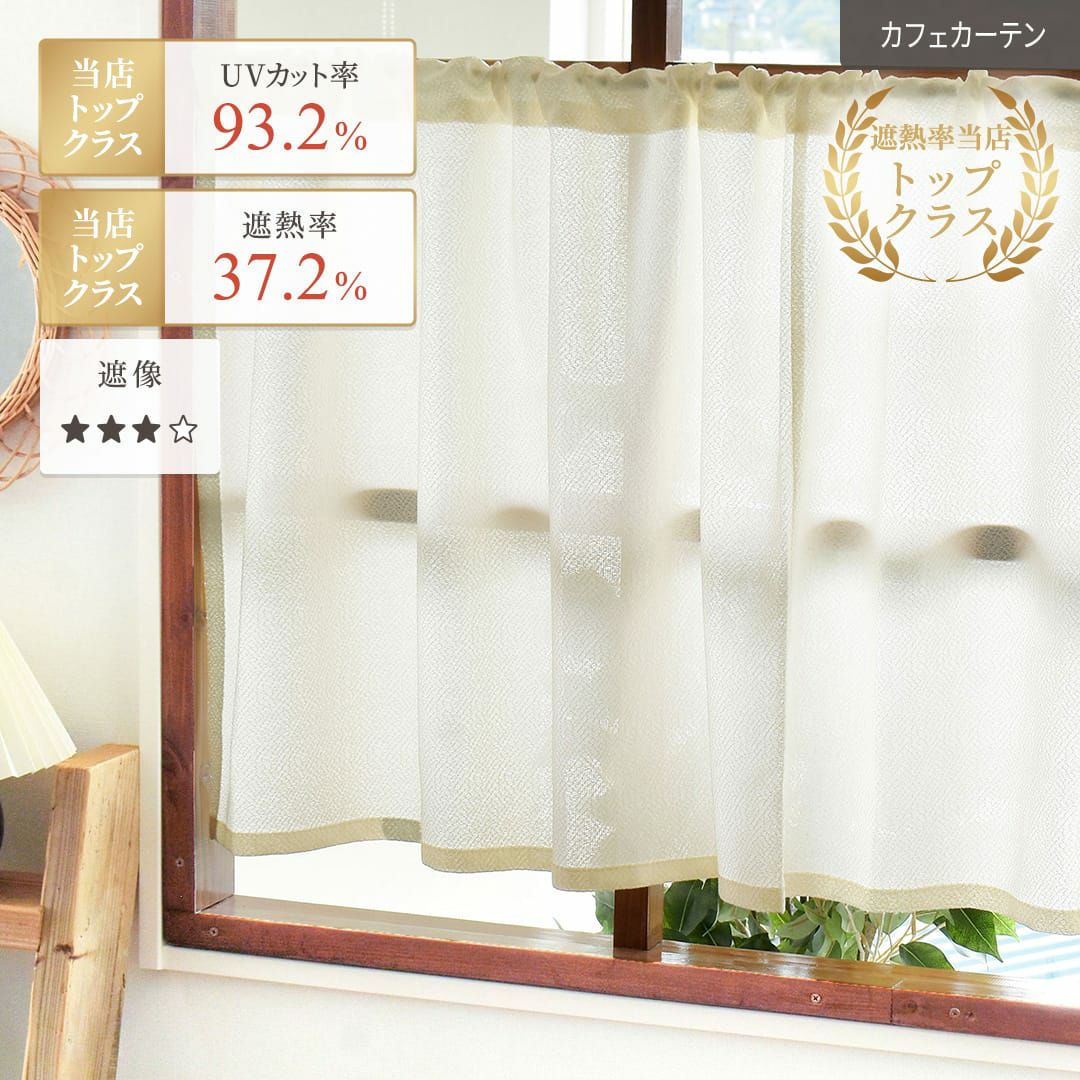 ▲写真のカラーはクリームです. ミラーレース生地だから、外から中への視線を遮ってくれます。 他にも外からの熱気を遮りお部屋を涼しくする遮熱機能、 室内に入る紫外線から家具とお肌を守るUVカット機能がついています。 機能面もデザインも重視したい方にうってつけのレースカフェカーテンです。