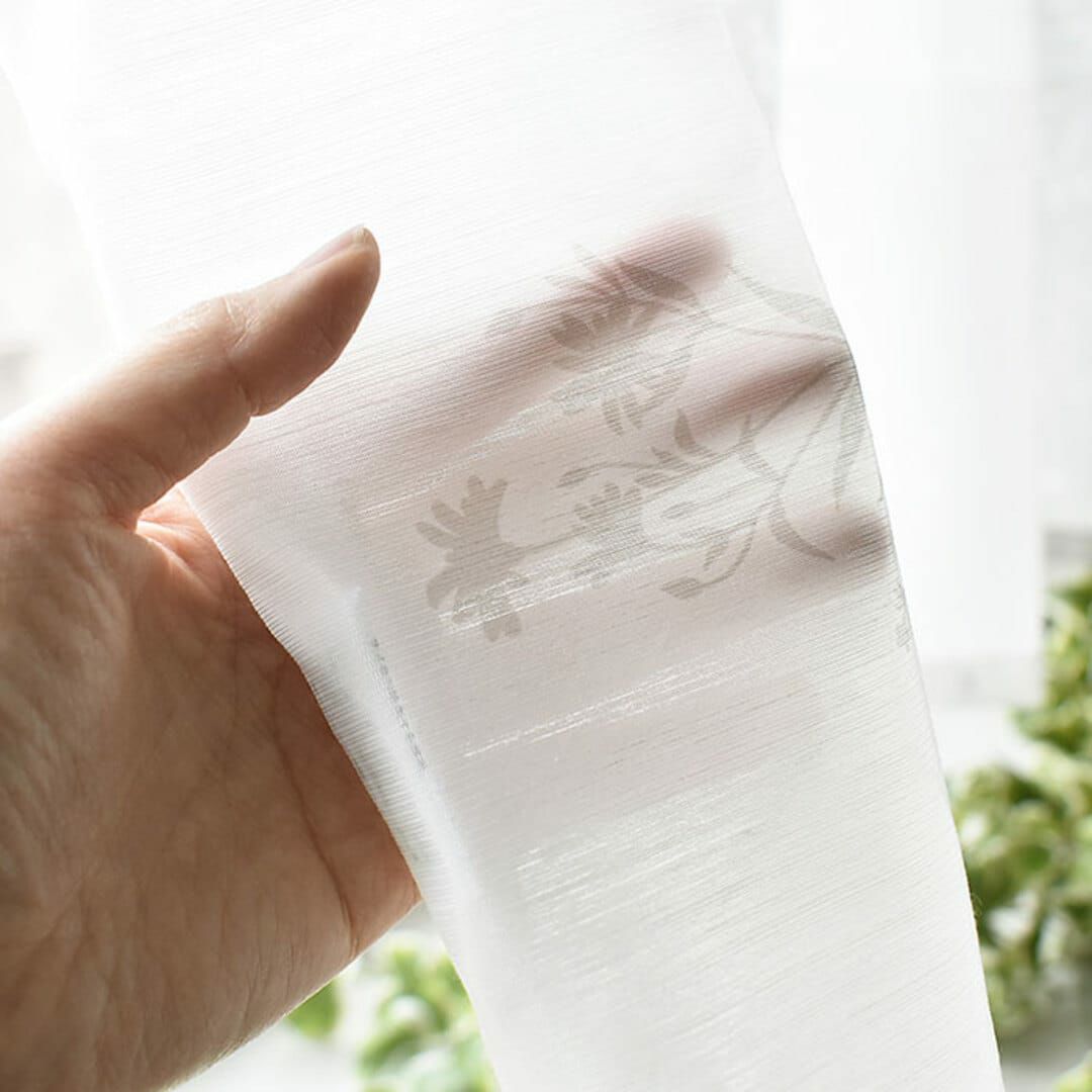 機能性にも優れたレース生地で光を反射して屈折させる光沢糸「ウェーブロンプラス」を使用したボイルレースです。 しっかり目隠ししながら、光を取り込み、お部屋を明るく快適に保ちます。 夜も外からの視線を遮り、プライバシーを守ります。