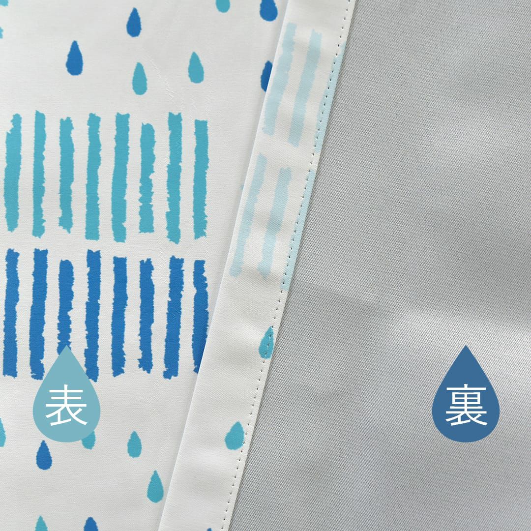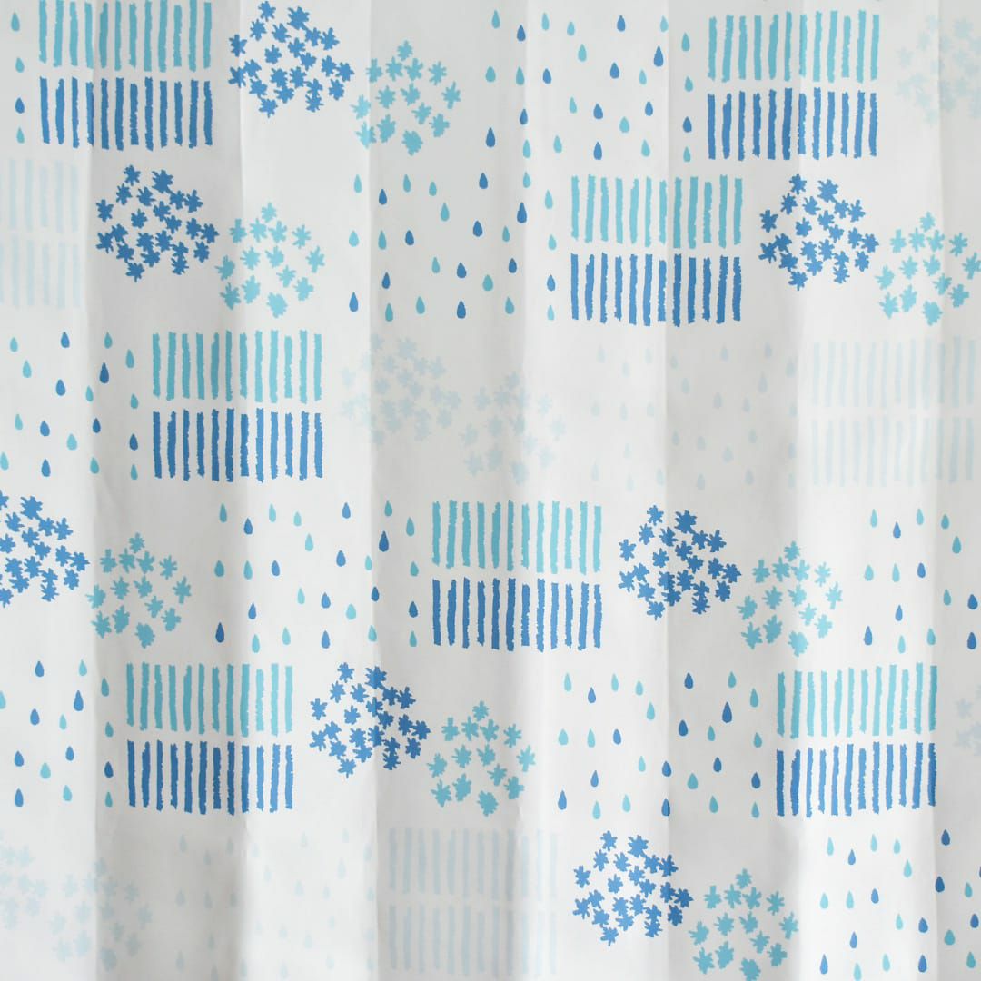 さらりとした白生地に水色・青色の2色で描かれた雨模様がかわいいドレープカーテン。 清潔感があり涼し気な配色で、じめじめした梅雨の時期も楽しく過ごせそう♪