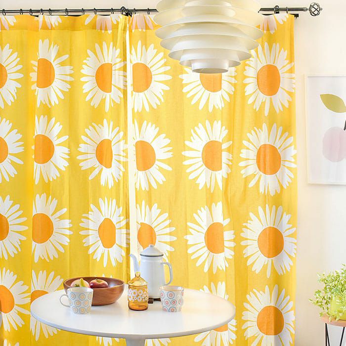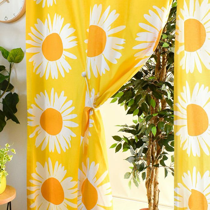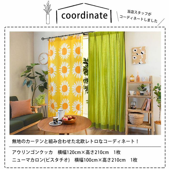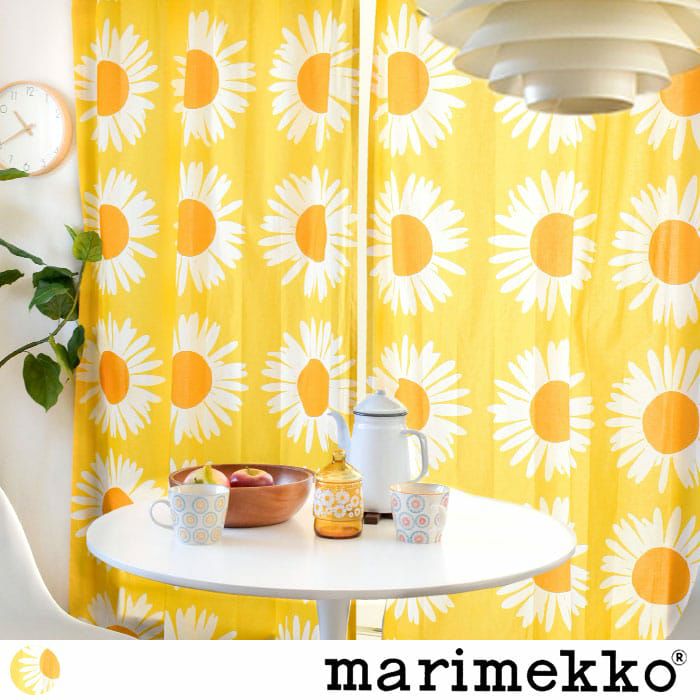 ※全て写真は横幅130cm×高さ210cmのフラット仕様です。 1959年にAinoMaija Metsola(アイノ・マイヤ・メッツォラ)が デザインした「アウリンゴンクッカ」。 ひまわりが描かれたこの作品は 大胆な色使いやデザインの中にあたたかさや懐かしさを感じさせます。 日々に彩りを与えてくれるカーテンは 北欧レトロやヴィンテージなスタイルなお部屋におすすめです。