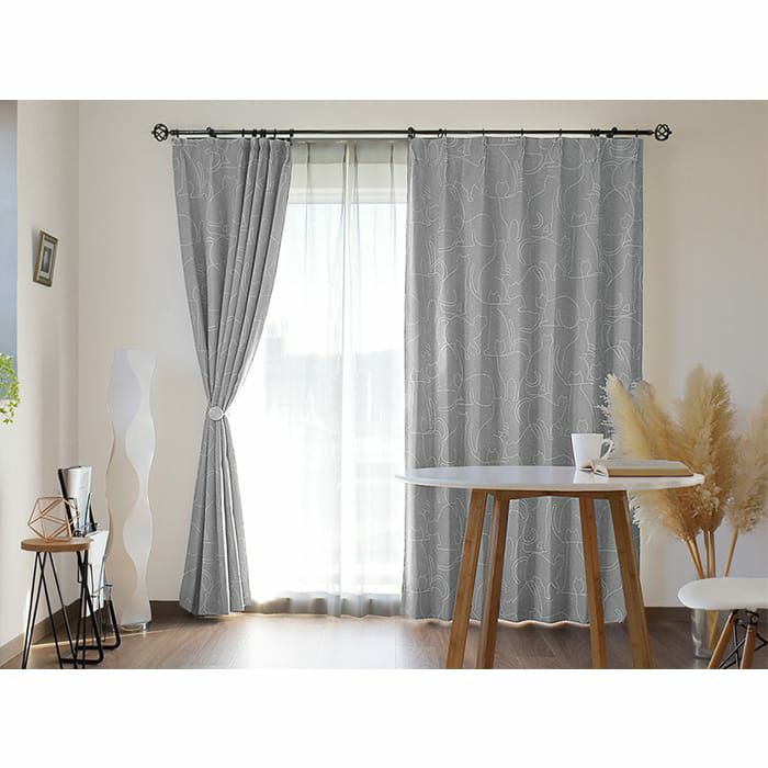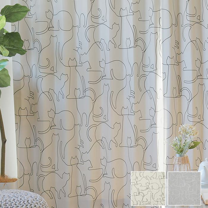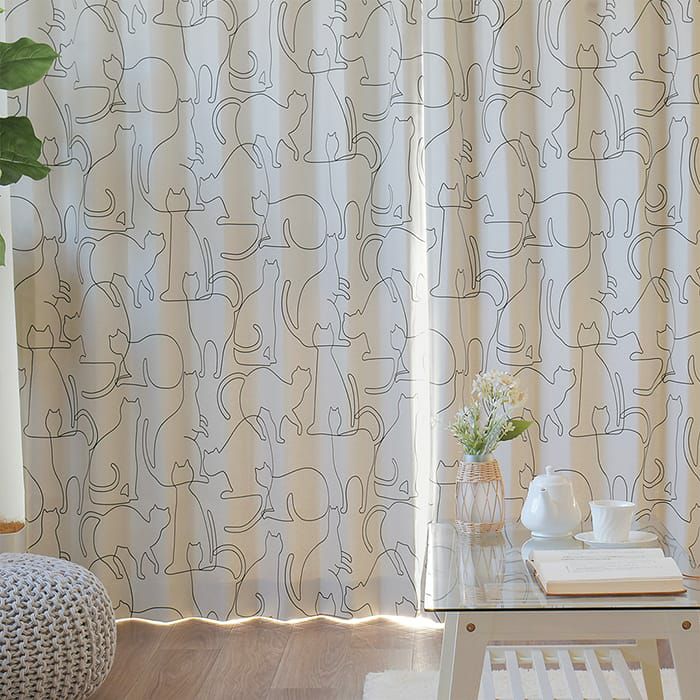 猫の輪郭が描かれたモダンな遮光1級カーテン